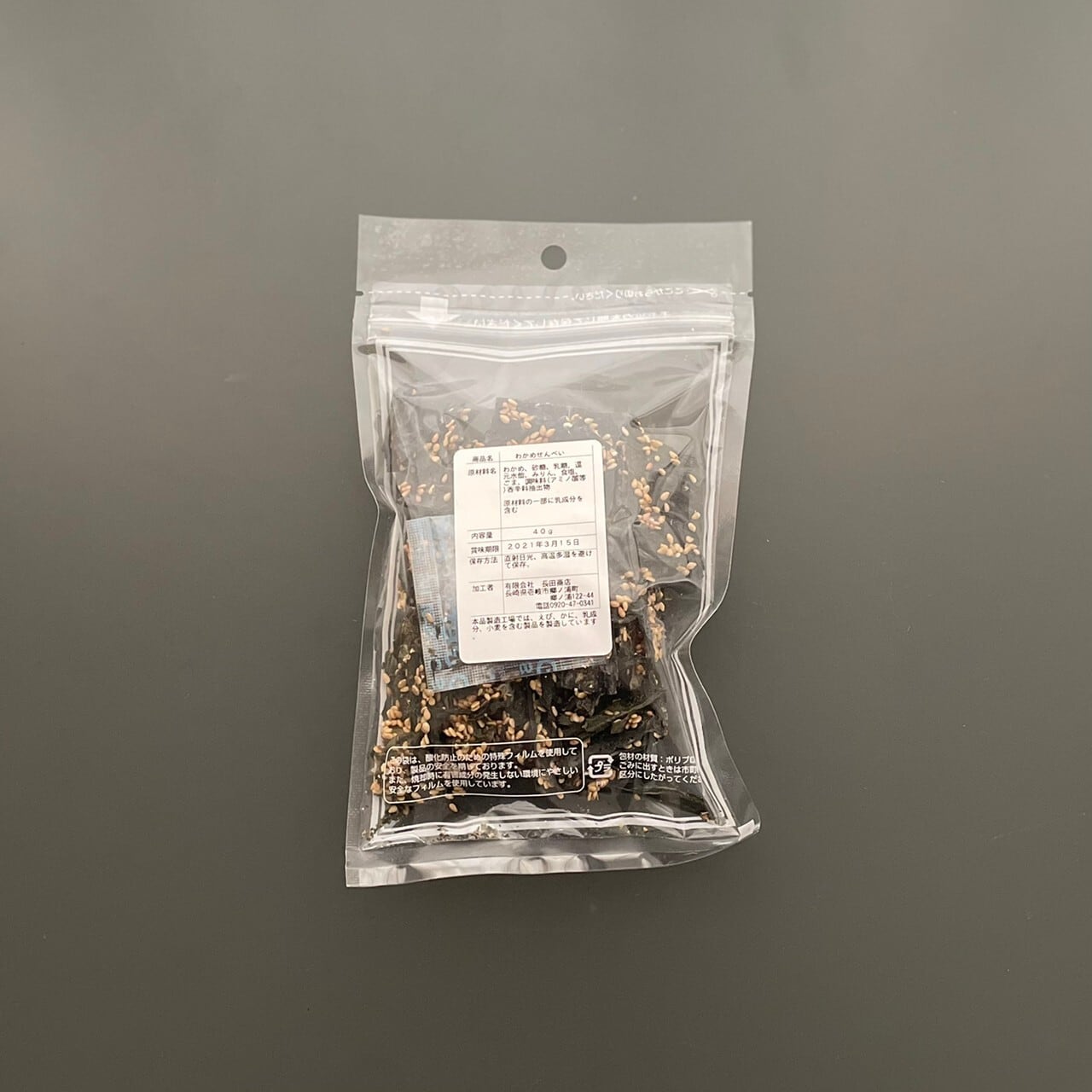 原材料:わかめ、砂糖、乳糖、還元水飴、みりん、食塩、ごま、調味料(アミノ酸など)、香辛料抽出物